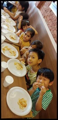 The children held the rope with their partners and started their walk towards Woodlands Madras restaurant, the first stop of the field trip.