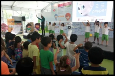 The children were delighted to be introduced to the robot named Pepper. Along with a few children from another preschool, they sang and danced with Pepper.