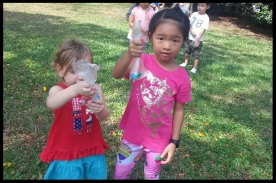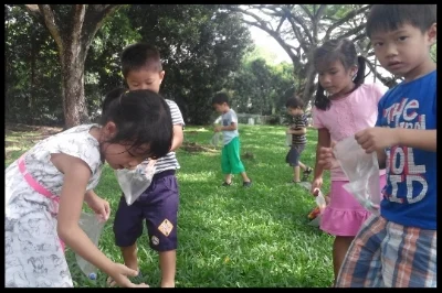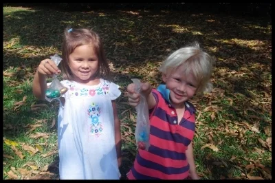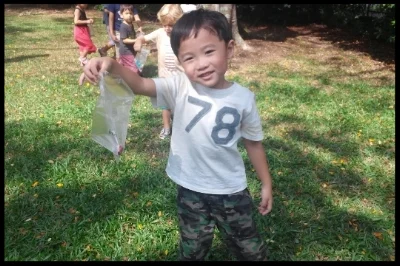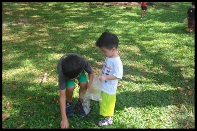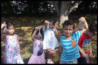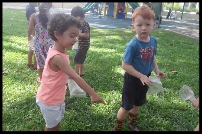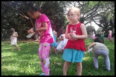 The children were thrilled to look for the chocolate eggs. The older children were helpful in directing their younger partners to where a lot of the eggs were.